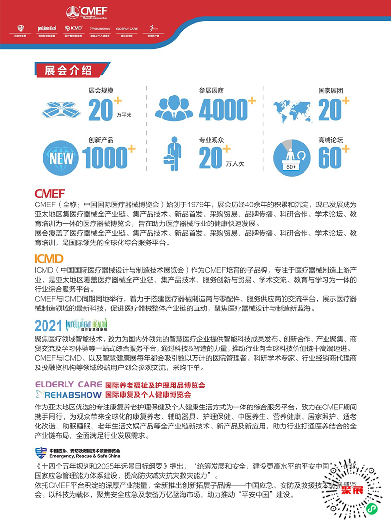The China Shanghai Medical Equipment Expo (CMEF) in Shanghai was first established in 1979 and is held twice a year, including exhibition and forum sections. Organized by Reed Exhibitions Group, it has now developed into an international leading comprehensive service platform that covers the entire medical device industry chain, integrating product technology, new product launches, procurement trade, brand promotion, academic forums, education and training.