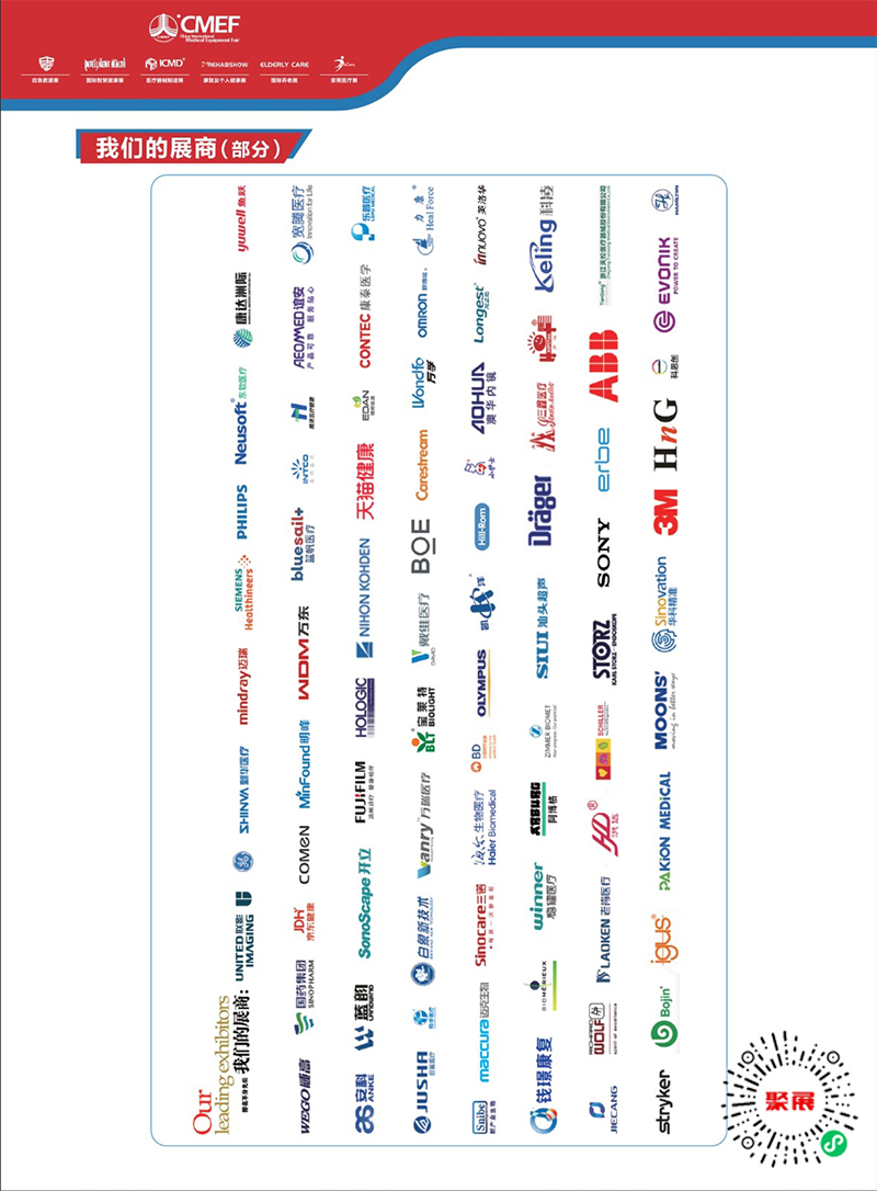 This CMEF features a gathering of renowned domestic and foreign enterprises displaying their flagship products. Enterprises such as United Imaging, GE, Siemens, Mindray, Philips, Sinomed, Eastsoft, Weigao, Yu Yue, SinopharmMedical Devices, Wan Dong, Koman, MicroPort, GE Healthcare, Kangda, Aotu, Yifan, Xin Gao Yi, Bai Xiang, David, Feiyi, Omron, Kangtai Medical, etc., with strong financial strength, will be distributed across various exhibition areas, creating a "ecosystem" for the entire industrial chain together with all sectors of the industry.