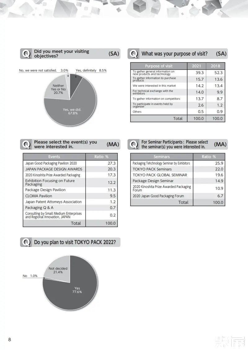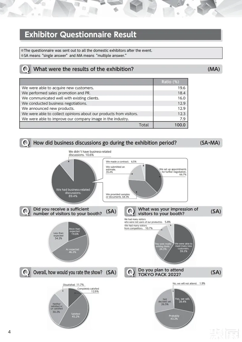 A distinctive feature of the Tokyo International Packaging Exhibition TOKYO PACK is that it gathers the latest information from the packaging industry, creating new chemical reactions between exhibitors and visitors, resulting in a synergistic effect for packaging technology innovation. The exhibitors at this exhibition are key decision-makers, making it an ideal choice for companies focusing on the packaging market.