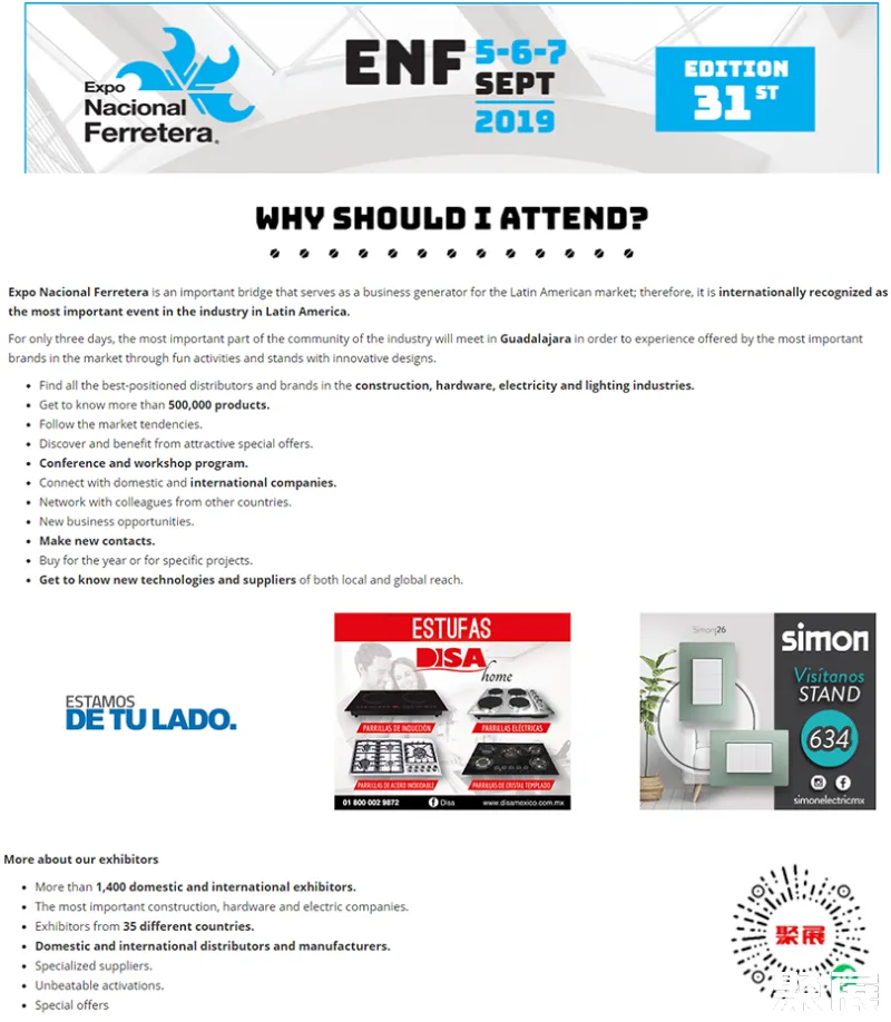 If you are a hardware company from China, participating in the Expo Nacional Ferretera will be a great opportunity. You can showcase your company's latest hardware products, technologies, and services at the exhibition, exchange experiences and establish contacts with professionals from around the world, understand market trends and business opportunities, and promote business exchanges with Mexico and other Latin American countries, expanding your business network and promoting the development and innovation of your company.