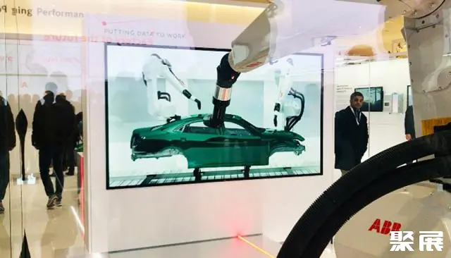 一片雪白中嵌着三个殷红字母的ABB展台,在本届汉诺威工业博览会的11号展馆中处于“C”位。在其展台的醒目位置,展示的是一个机器人手臂,正在为排着长队的客户和观展人员现场组装个性化手表。