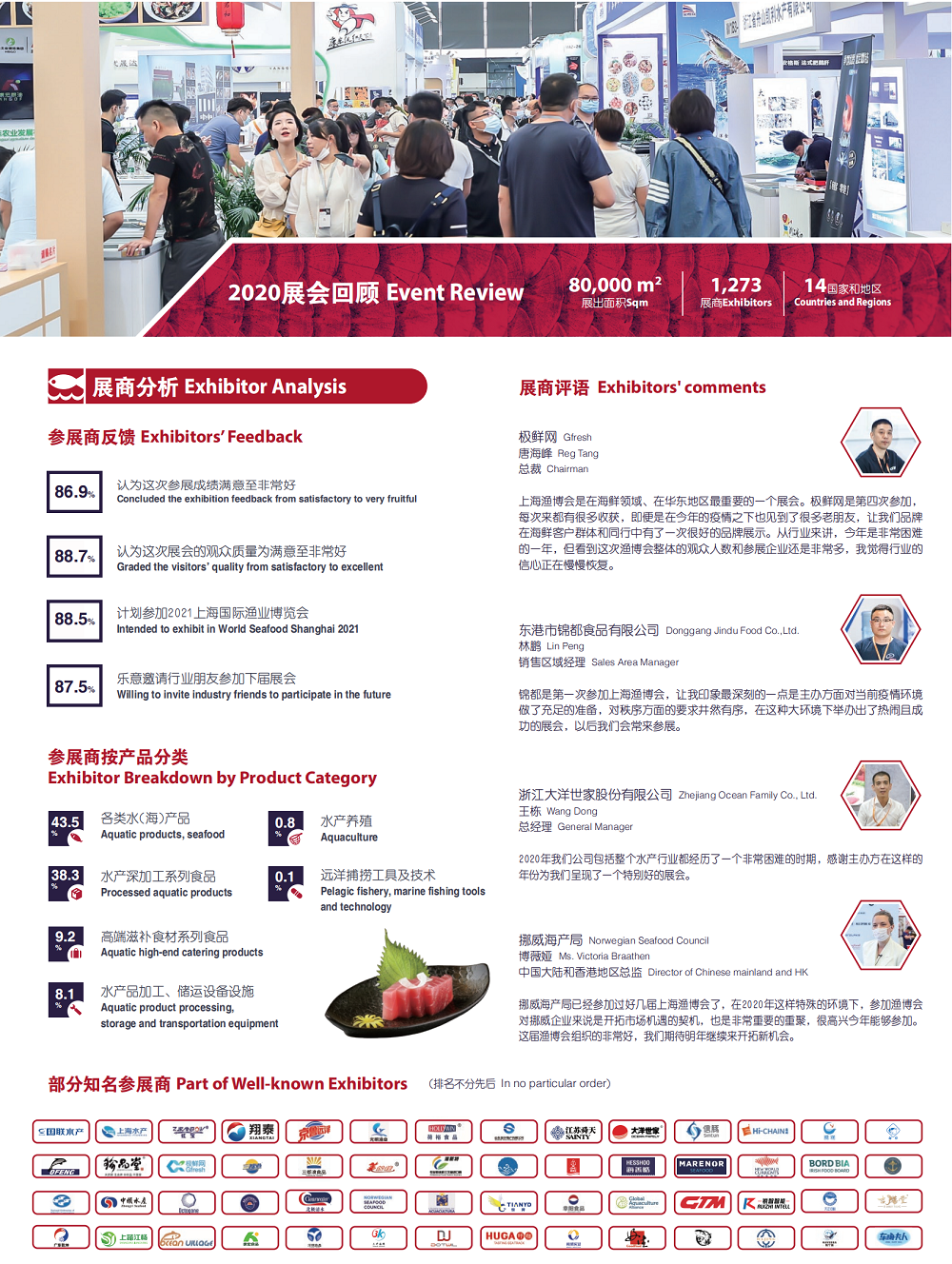 加工、包装、保鲜技术与设备:鲜水产冷冻、加工、保鲜技术及设备;包装材料、设备及工艺;水产工艺品展示;环保、杀菌技术设备;冷链物流方案及相关设备;冷库、养殖技术和设备