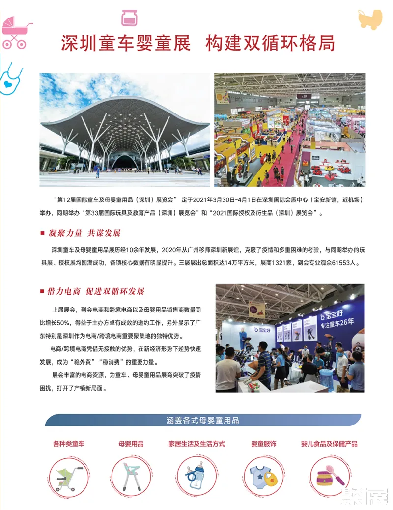 2025深圳童车展-深圳婴童用品展在线预定展位 聚展为您呈现展位图、展位报价、参展商名单、会刊申请、邀请函申请、门票预定、签证服务、展位搭建等。想了解更详细资料,请联系聚展~ 本资讯由聚展网工作人员整理编辑,我们是一家汇集全球展会时间地点、门票购买、展位申请、展商名录及展会会刊的服务平台。参考资料: