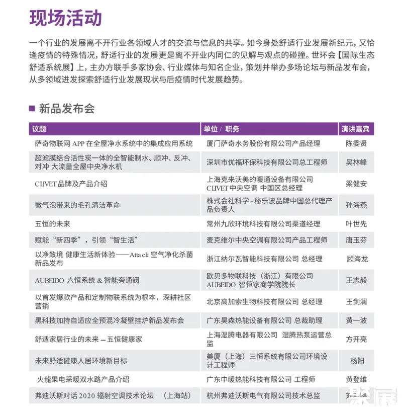 同时还进一步吸纳了暖通系统与建筑给排水系统解决方案,适用范围包括、康养、酒店、餐厅、办公楼、高端别墅等大型空间,势必引发一波智慧生态环境的。二十一世纪生态舒适家居系统进入中国,成为全宅智慧家庭、智能社区的重要组成部分。在大环境的驱使下,一场具有行业规模及影响力的上海国际暖通空调与舒适系统展(COMFORTECO CHINA)应运而生。