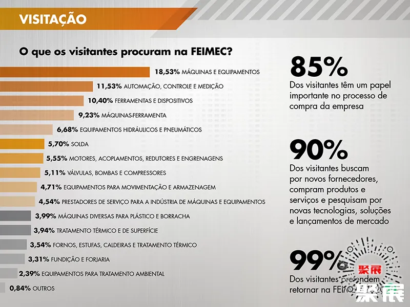 巴西圣保罗工业展览会(FEIMEC)是世界范围内传统综合机械机床类展之一。展览范围较广,基本揽括了机械工业方面的各种产品。其中主要有:机床及附件、基础工业设备、控制和测量仪器、仪器仪表、环保设备和材料;机械设备和附件、阀门、泵、压缩机、各种工具;铸造设备和材料、喷漆设备和附件等。(本文内容版权归属聚展所有,未经同意,禁止转发)