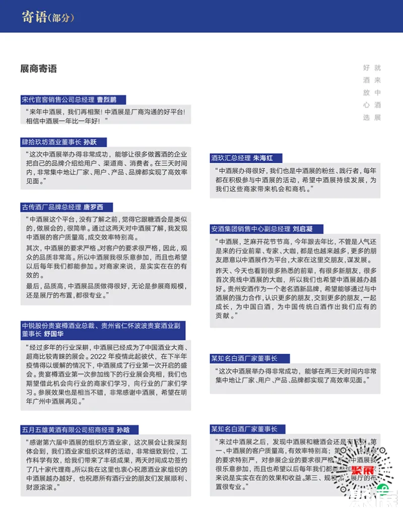 中酒展已成为中国酒业思想高地、中国酒业思想风向标阵地、中国酒业论坛IP制造者。本次展会,组委会秉承“内容为王、没有广告”的宗旨,聚焦酱酒、葡萄酒、啤酒、老酒、光瓶酒等细分领域,全方位剖析各领域现状与趋势、危机与机遇。(本文内容版权归属聚展所有,未经同意,禁止转发)